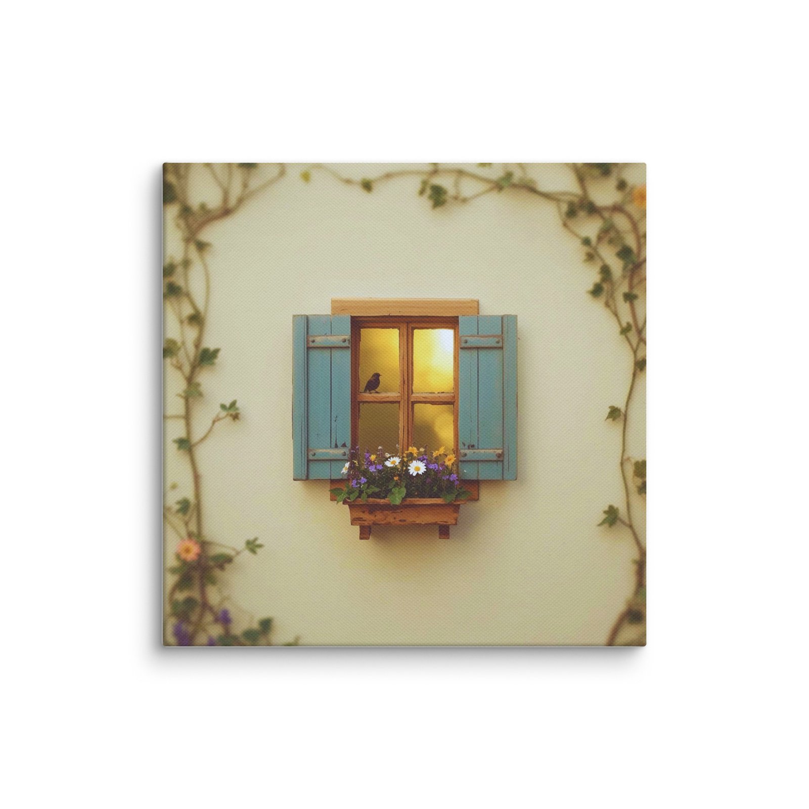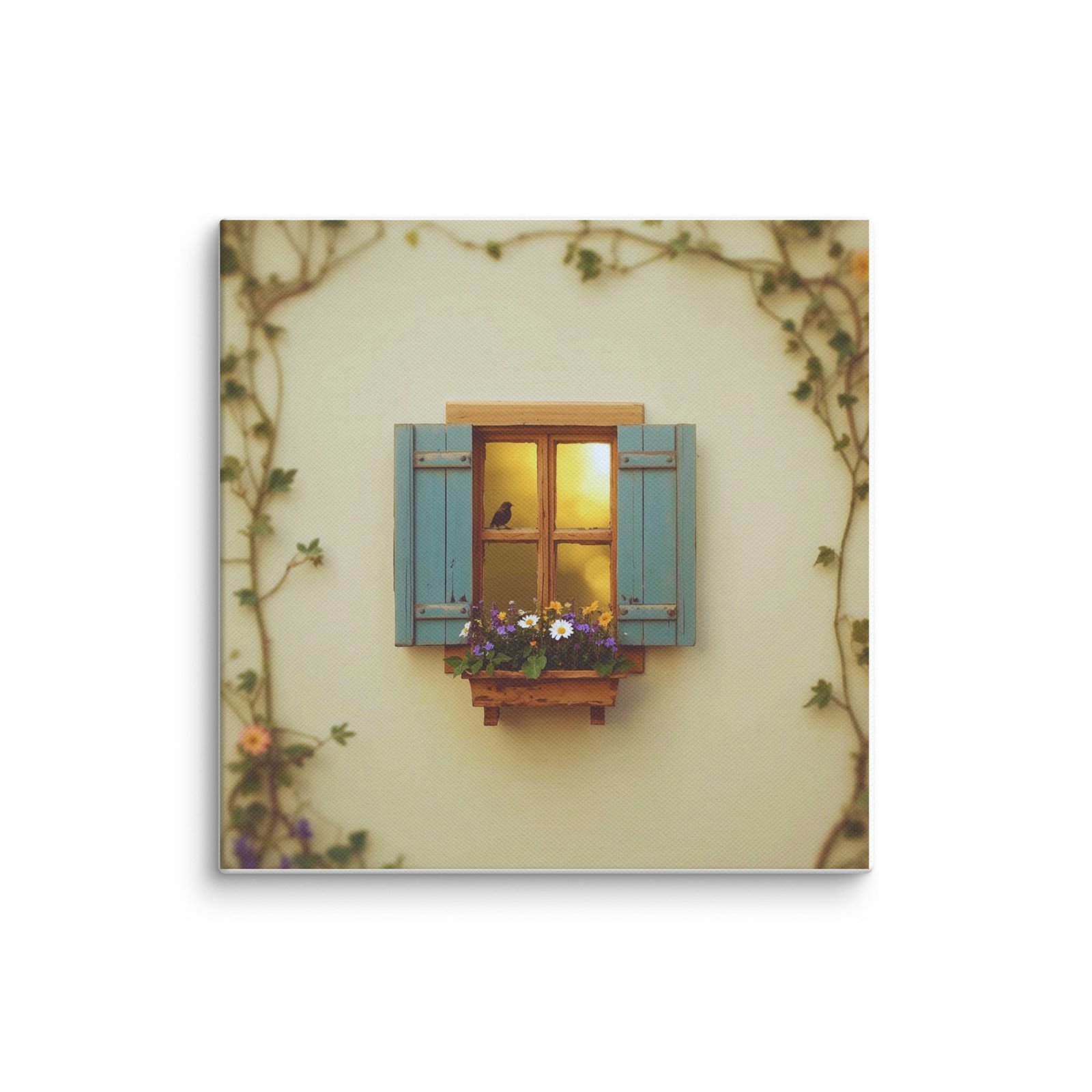 Step into a gentle morning dream with Whispers from a Cottage Window, a cottagecore-inspired canvas print designed to bring warmth and nostalgia into your space. At the heart of the artwork, a rustic wooden cottage window opens to the soft light of dawn. Window boxes overflow with wildflowers — daisies, lavender, and buttercups — spilling freely as if nature itself is telling a quiet story. A tiny bird rests on the sill, keeping peaceful company while golden light glows from within the cottage.